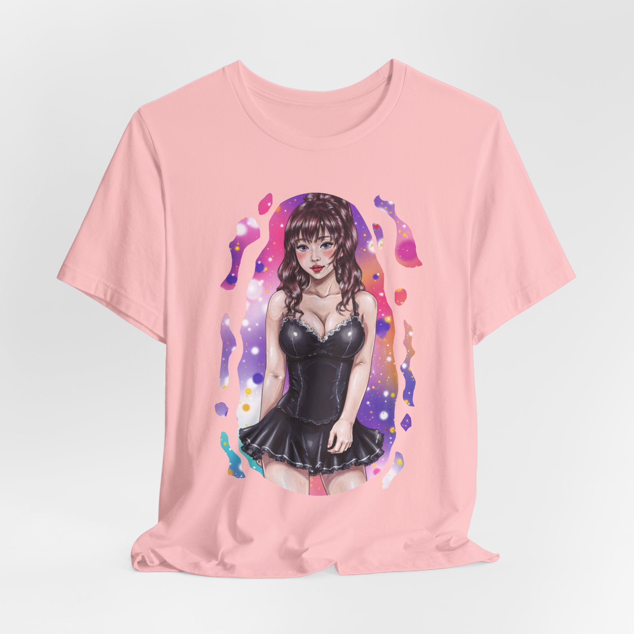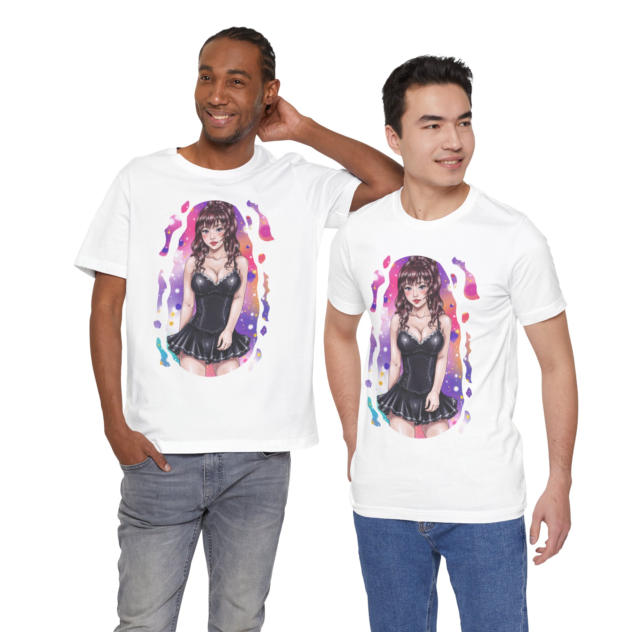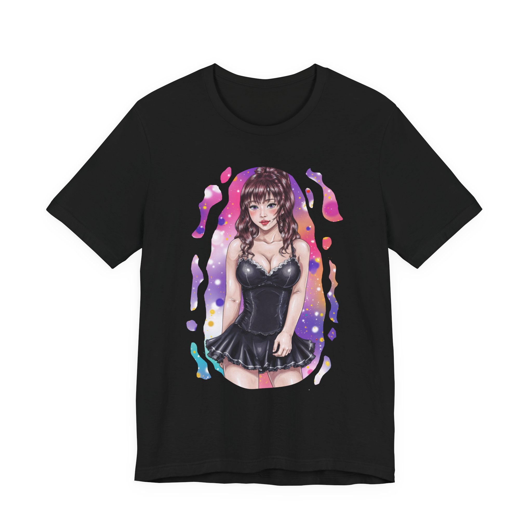Unisex short sleeve tee featuring our black dress waifu design.
