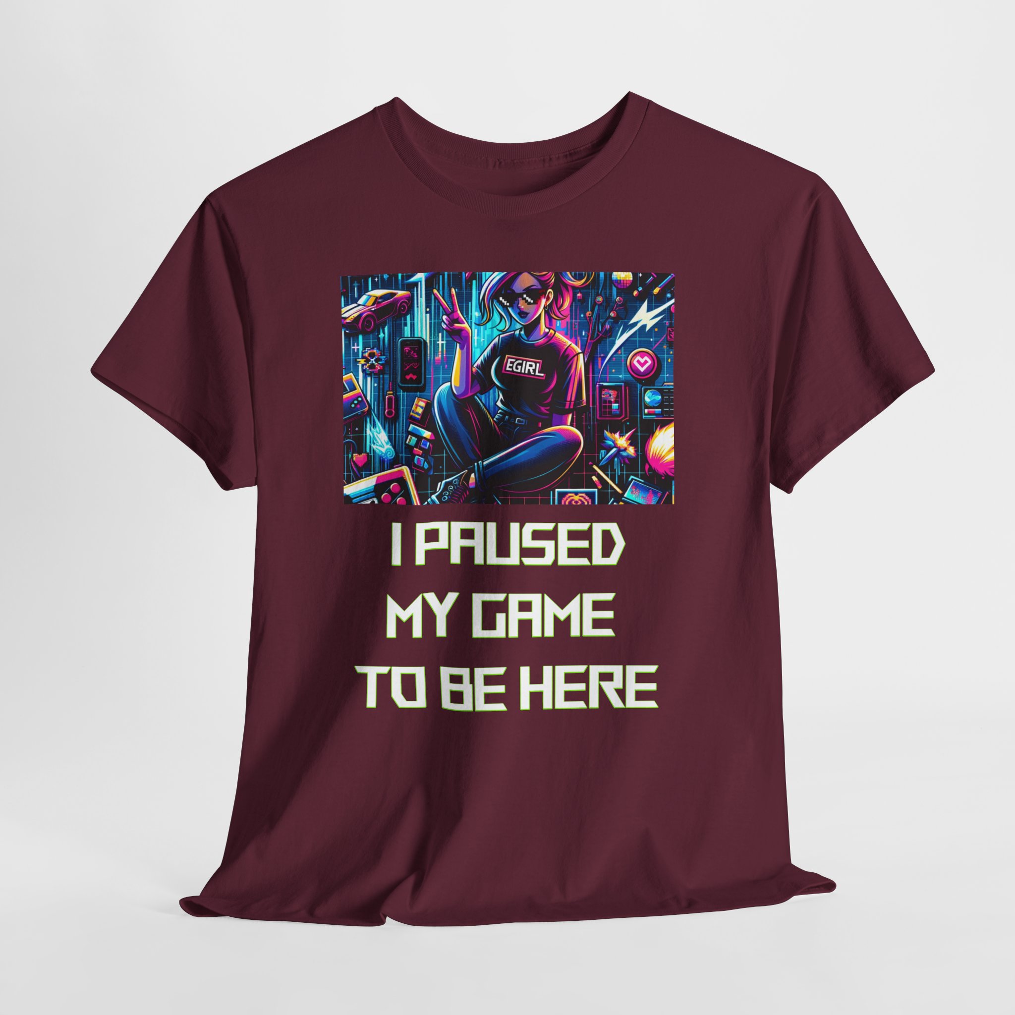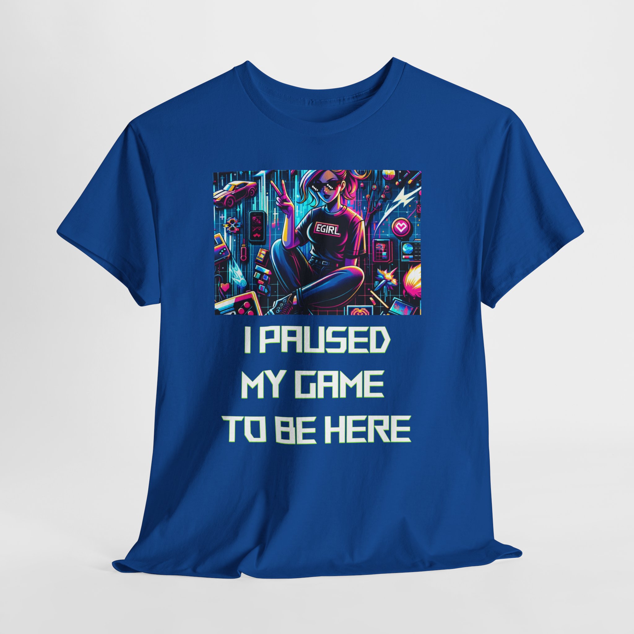 Elevate your wardrobe with our ‘I Paused My Game to Be Here’ tee in stylish black. Perfect for expressing yourself or as a bold gift, this tee is designed to get people talking. Its striking text stands out in a bold world. Crafted from heavy cotton for ultimate comfort and longevity, it ensures you rock your look with effortless flair.