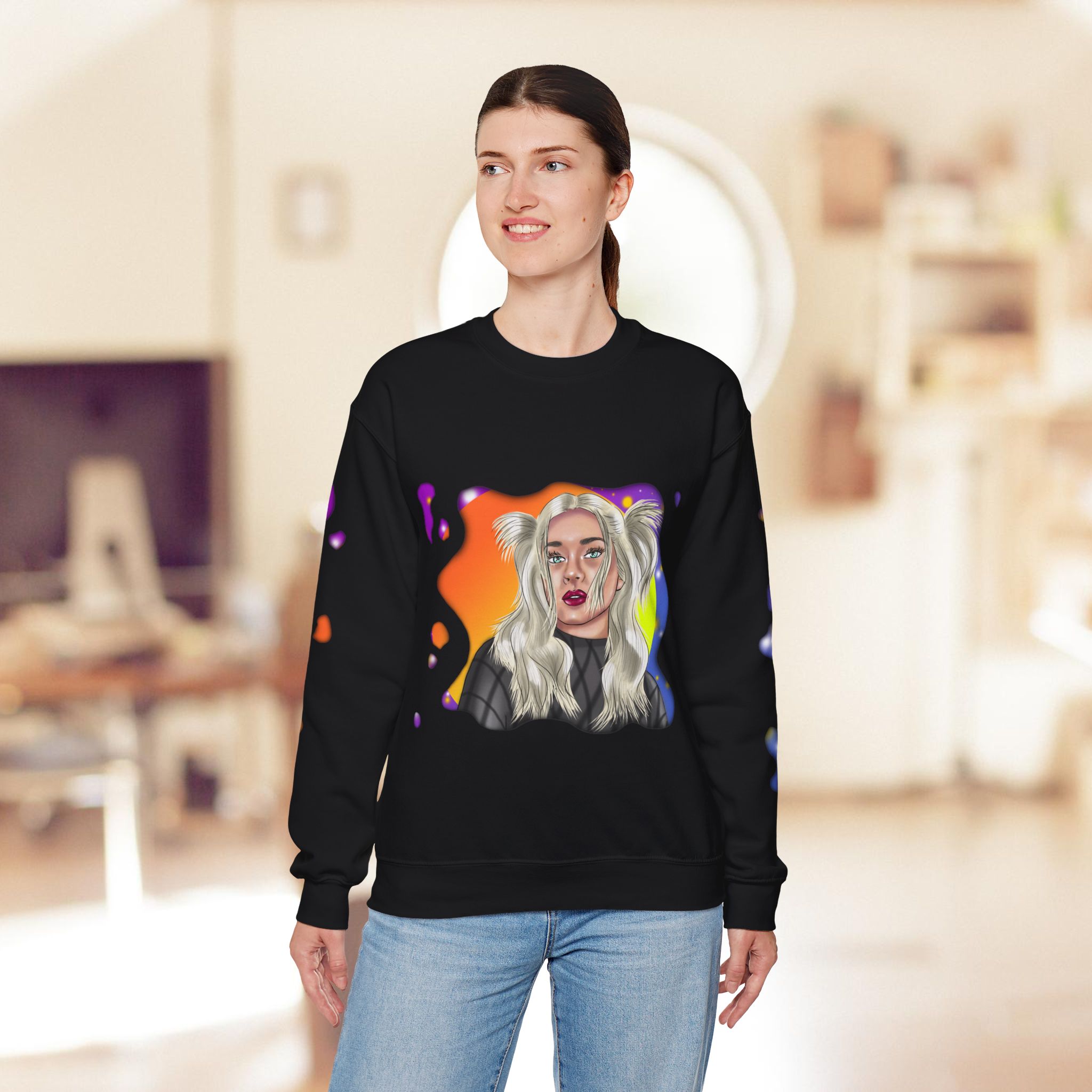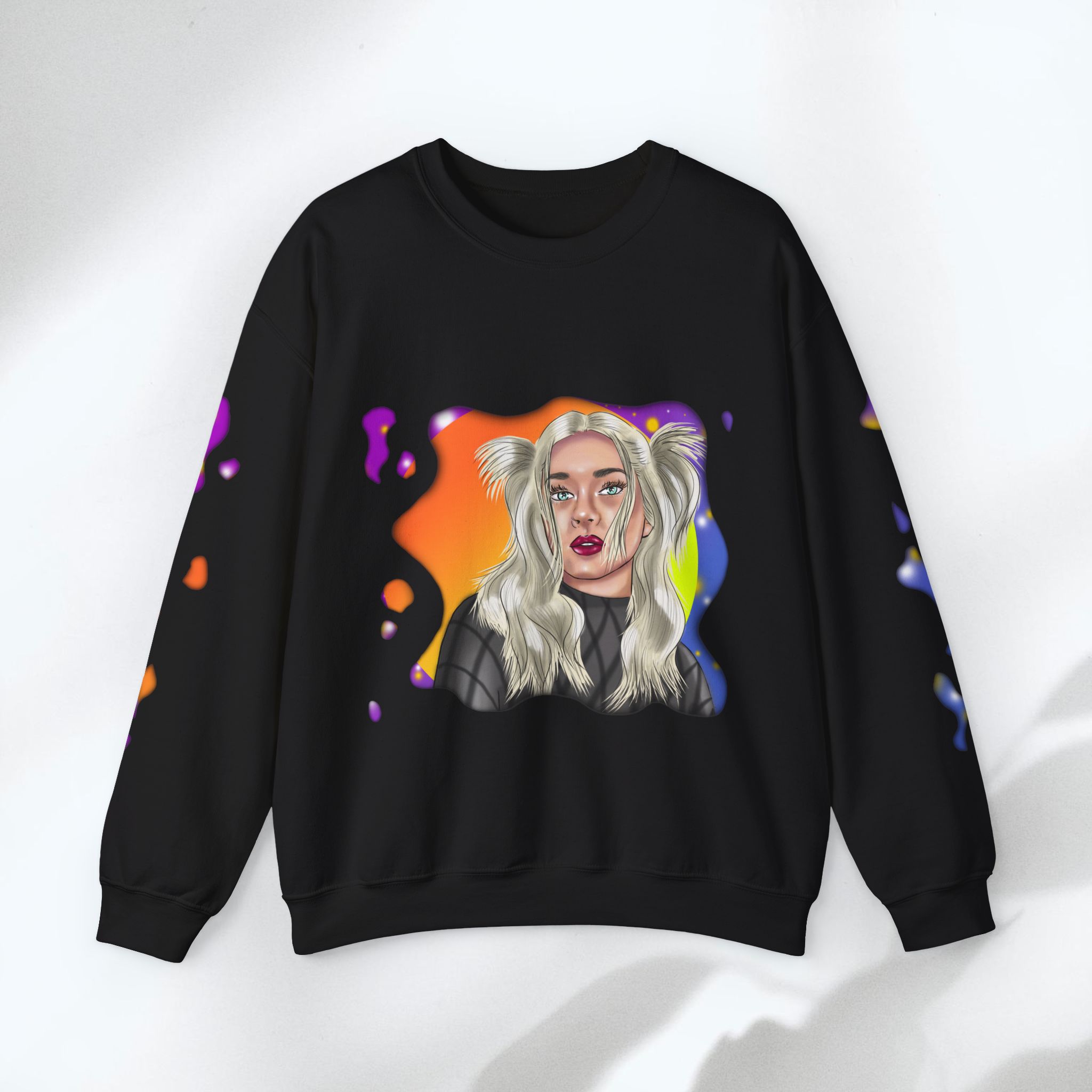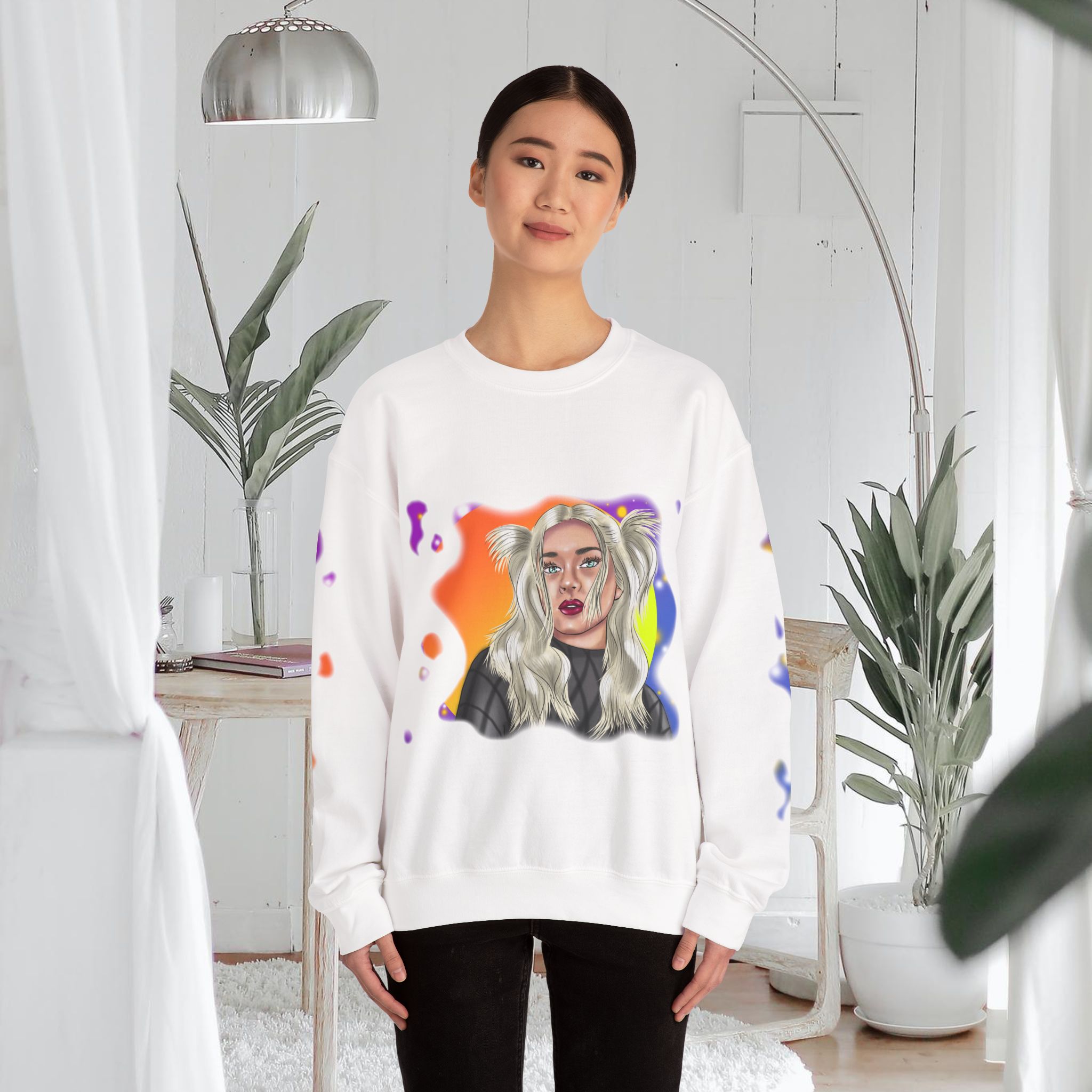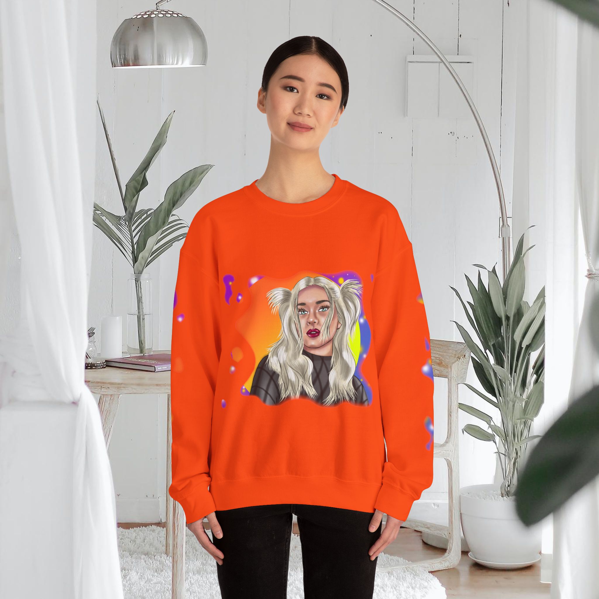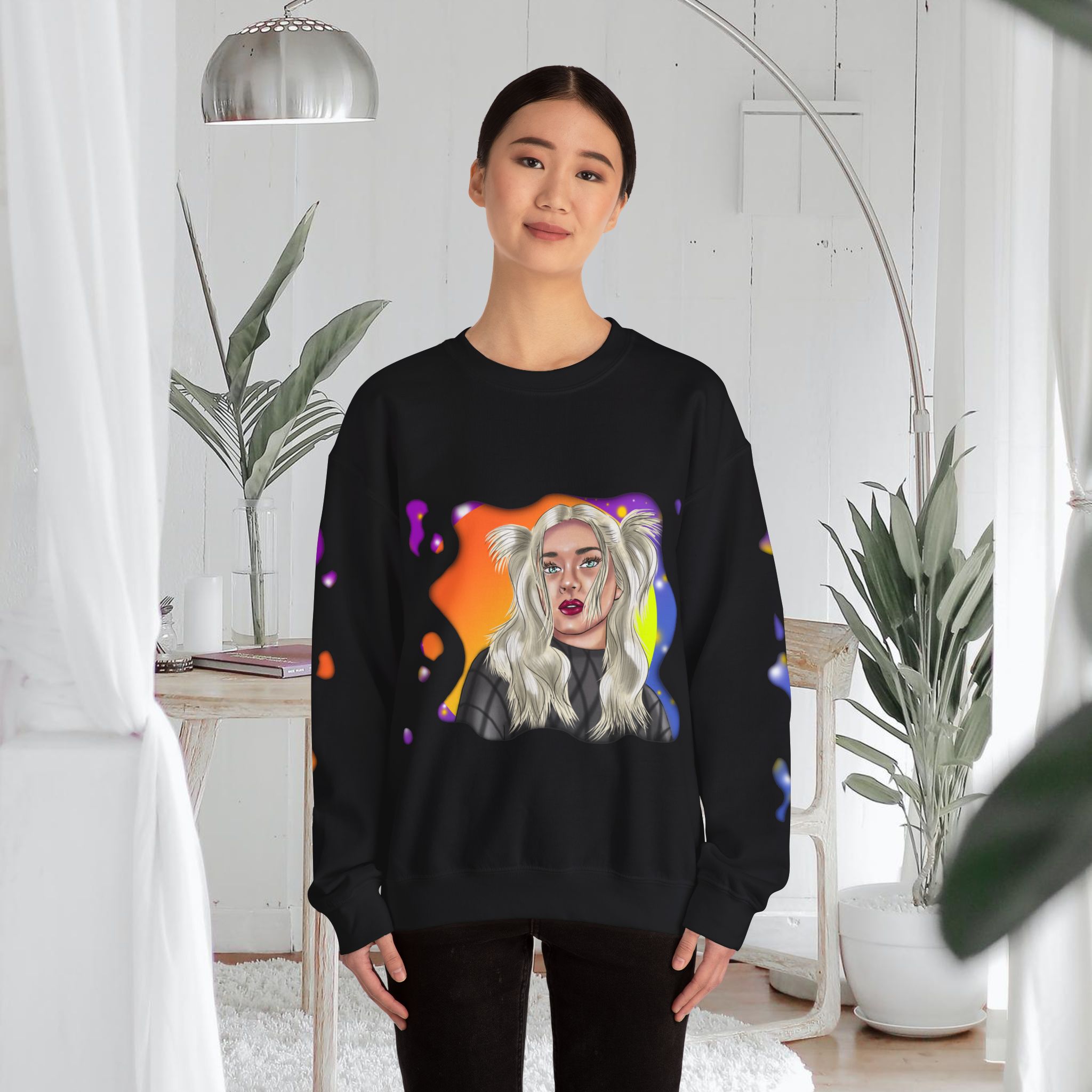 Hand drawn with love for beautiful women, attention to detail, and an eye for colors by our artist, to make a beautiful design to adorn quality shirts. This shirt will for sure be some of the coolest, most aesthetic, and unique clothes in your wardrobe! Front and sleeves printed on a comfortable heavy blend sweatshirt.
