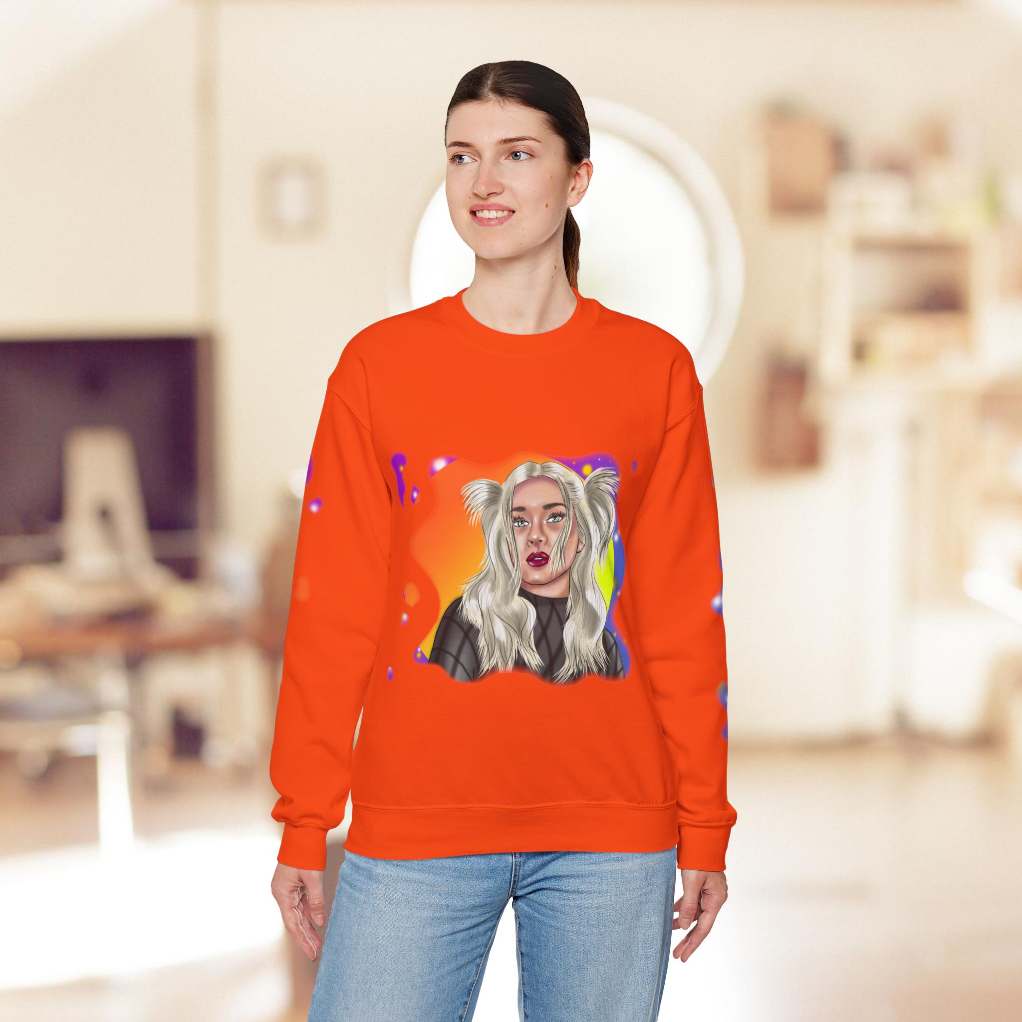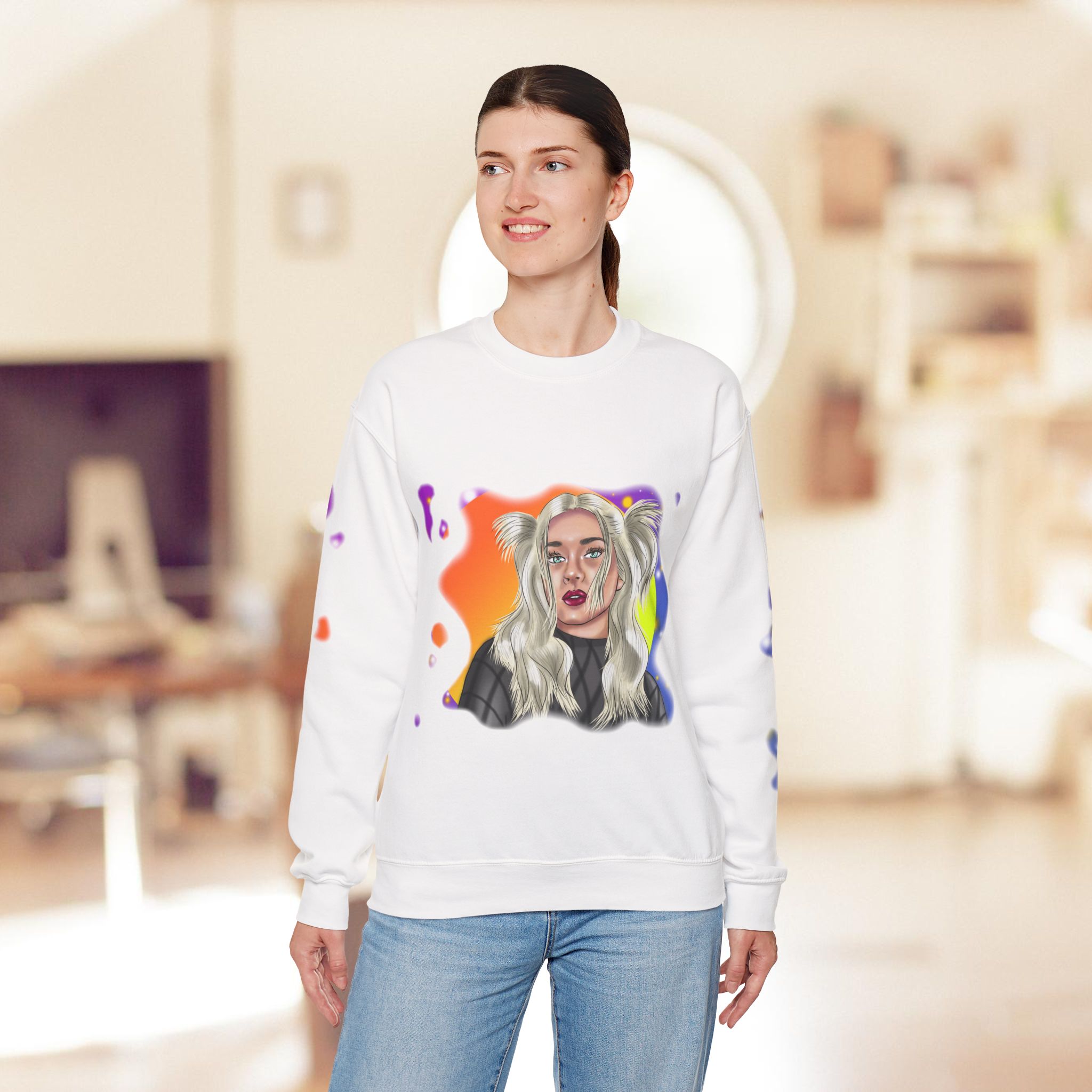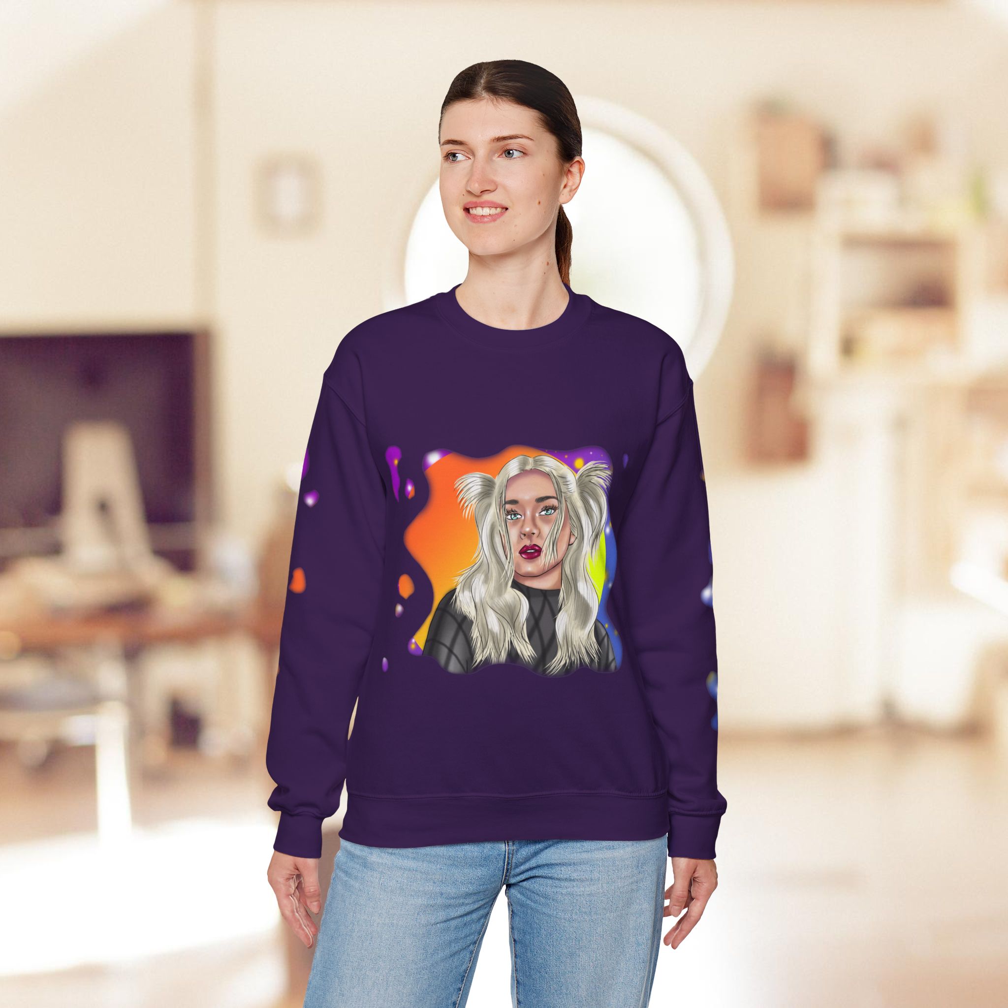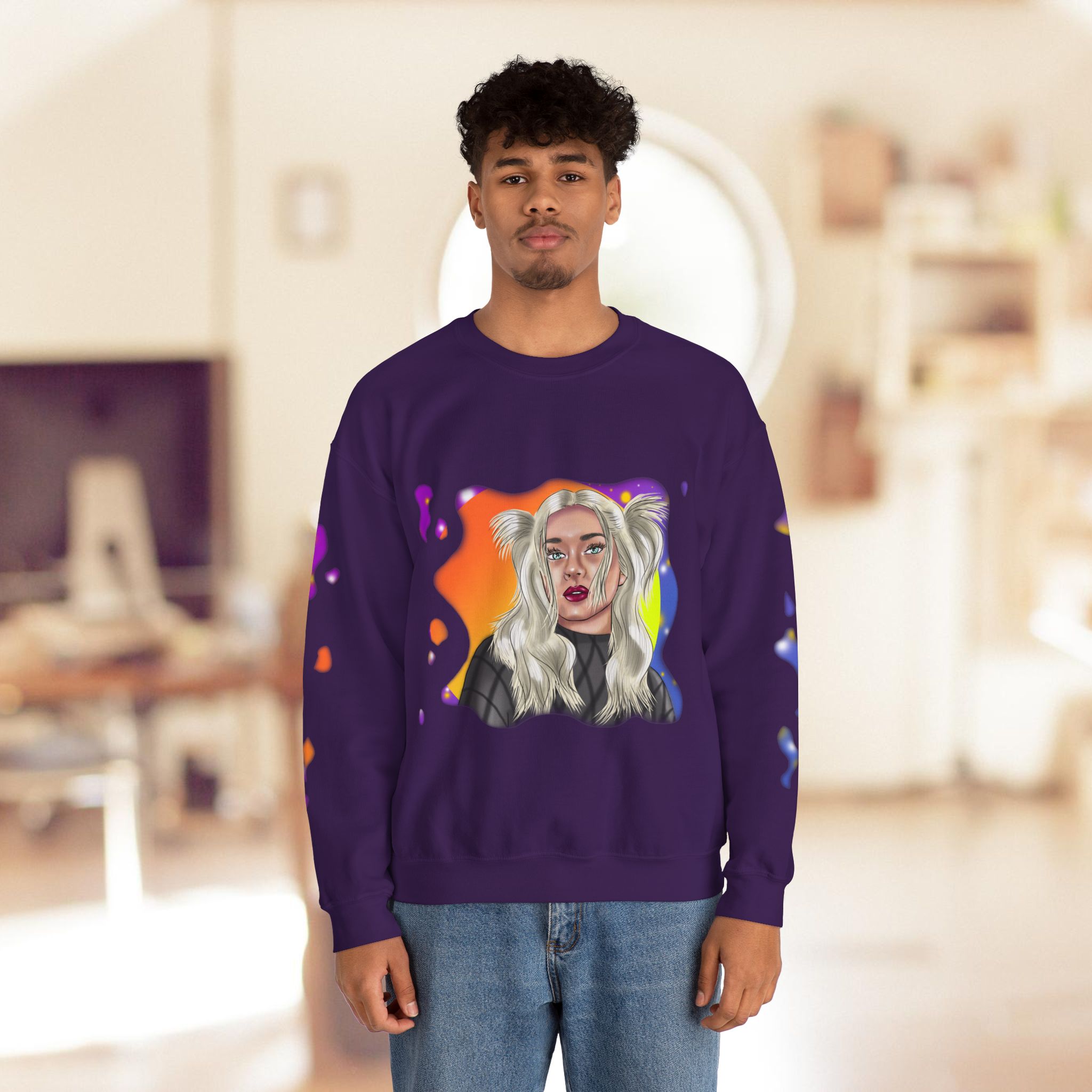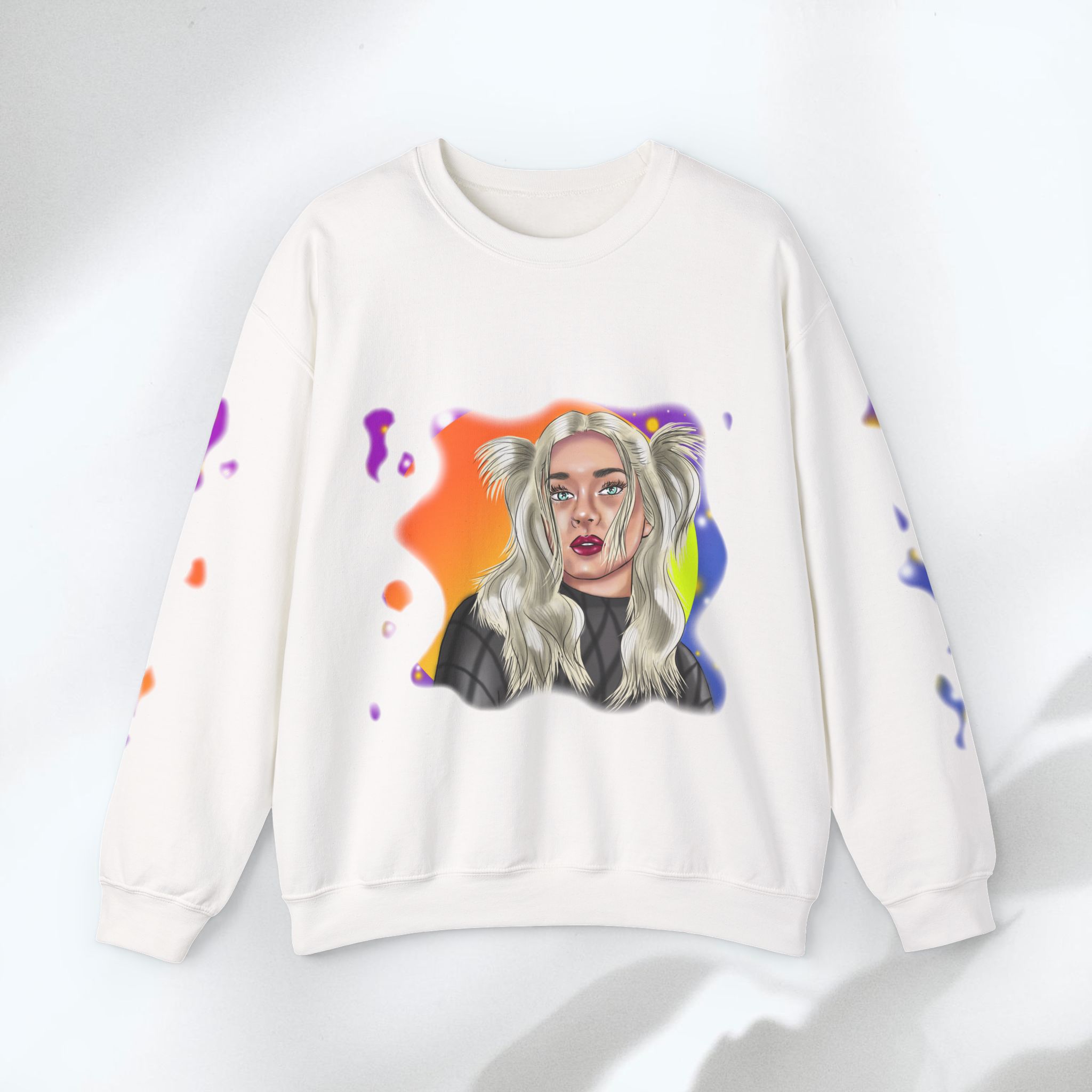 Hand drawn with love for beautiful women, attention to detail, and an eye for colors by our artist, to make a beautiful design to adorn quality shirts. This shirt will for sure be some of the coolest, most aesthetic, and unique clothes in your wardrobe! Front and sleeves printed on a comfortable heavy blend sweatshirt.
